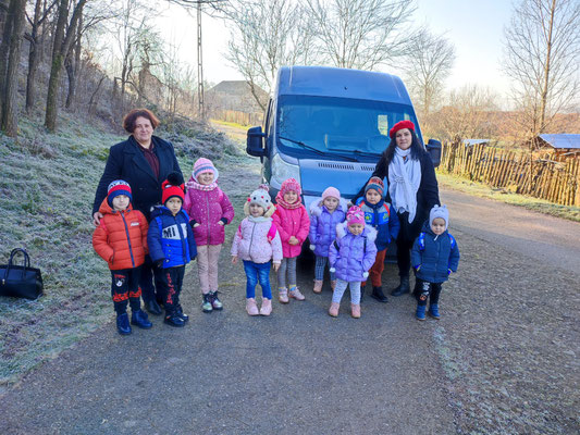 La grădinița noastră 1 copil este din Baia de Criș iar 13 copii sunt din alte sate din jurul localității Baia de Criș ( Cărăstău, Rișca, Țebea, Ștei, Birtin). Pentru acesti copii trebuie să asigurăm transportul. Mare parte din resursele noastre materiale se duc pe aceste cheltuieli de transport. Cu mașina noastră personală trebuie să facem zilnic în jur de 70 km. Părinții încearcă să acopere o parte din aceste costuri dar le este greu și de aceea ne-am oferit noi (eu și soțul) să-i transportăm pe copii pentru ca să arătăm că ne pasă de educația lor.